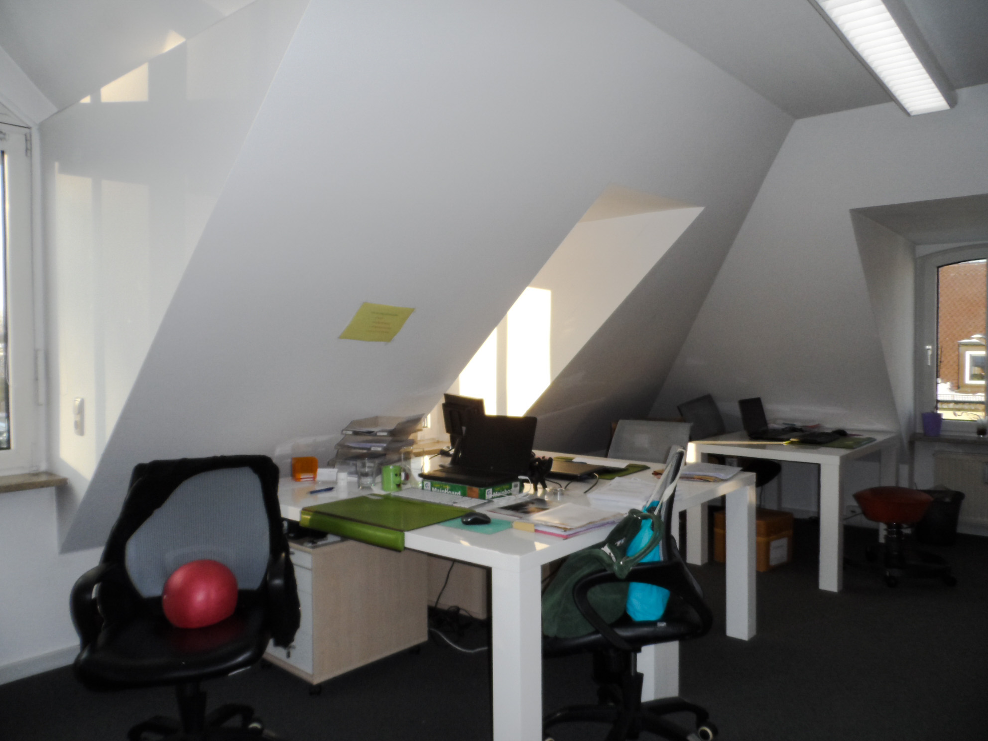 Das außergewöhnliche Büro befindet sich im 3. Obergeschoss des gepflegten Geschäftshauses. Das erste Büro ist durch eine schöne Glastrennwand ausgestattet, welche die Aufteilung zu 2 Räumlichkeiten bietet. Das zweite Büro ist ein separater großer Raum, welcher als Konferenzraum oder für weitere Arbeitsplätze genutzt werden kann. Die tolle Bürofläche ist mit hochwertigem Teppichboden ausgestattet.